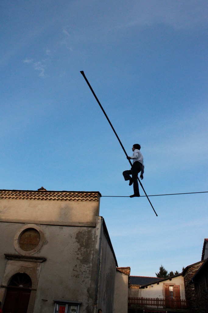 Cette forme courte propose un moment suspendu, à 5 m du sol, où la peur et le plaisir se côtoient. C’est un moment au rythme du fil, lent, calme, qui permet de prendre le temps de redécouvrir ce qui nous entoure avec un regard neuf. Une expérience, préparée avec soin mais qui finalement est à chaque fois nouvelle, puisque vous êtes là.